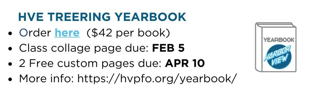 For room parents, class collage page specifications can be found on https://hvpfo.org/yearbook/ and are due THURSDAY, FEB 5th 2026