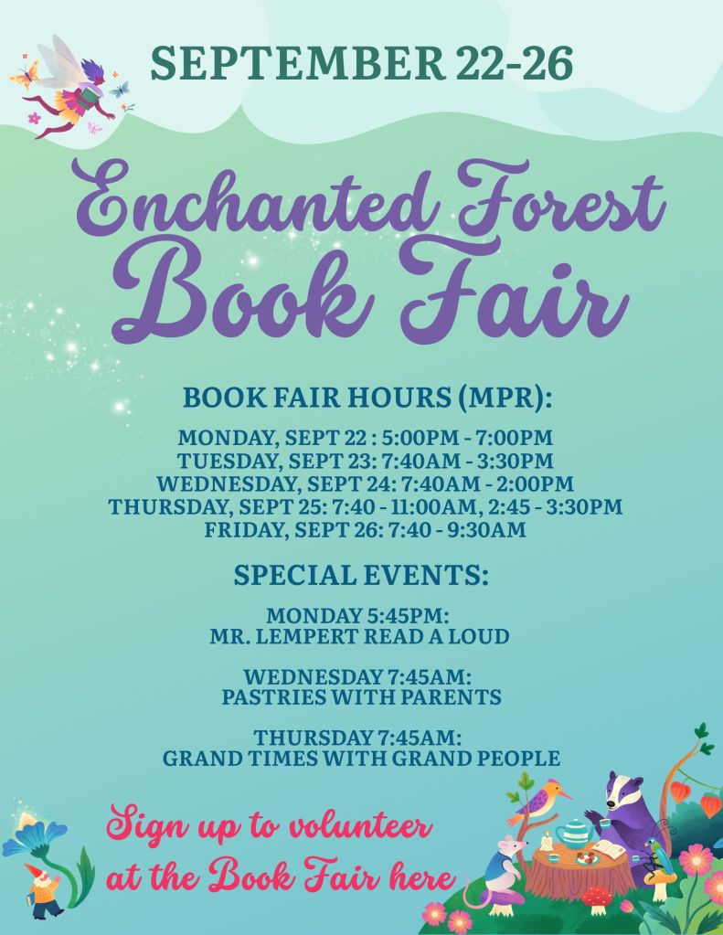 Book Fair is coming Sept 22-26th in the MPR!