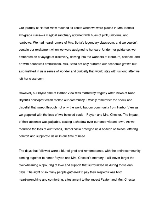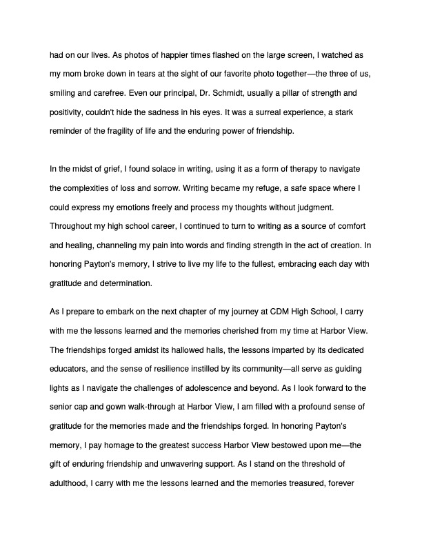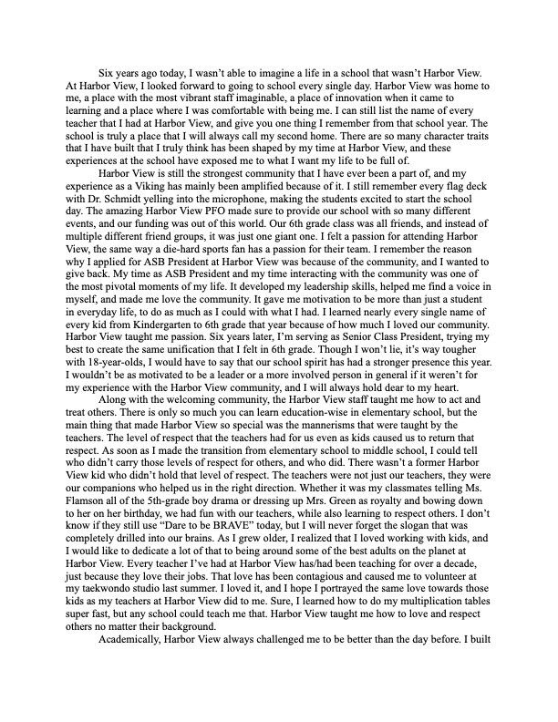Each year the HVPFO awards an annual scholarship to two outstanding graduating Seniors of Corona del Mar High School who attended Harbor View Elementary when younger. Upon his graduation from CdMHS, Bradley Evans received this award from the HVPFO. Bradley passed away too soon. In June of 2001 The HVPFO renamed our annual scholarship to ‘The Harbor View PFO Brad Evans Memorial Scholarship’ in his honor.