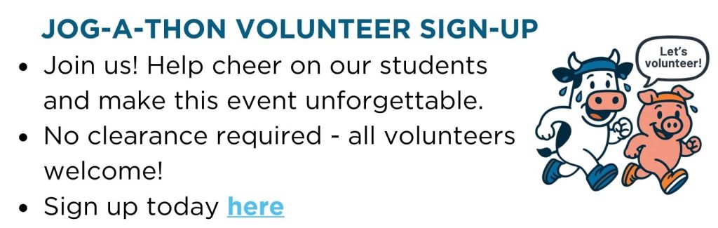HVE Jog-A-Thon 2026 Jog-A-Thon February 4, 2026 Register and Donate on PledgeStar HERE Become a Family or Corporate Sponsor Today! Sponsor HERE Sign up to Volunteer at Jog-A-Thon HERE