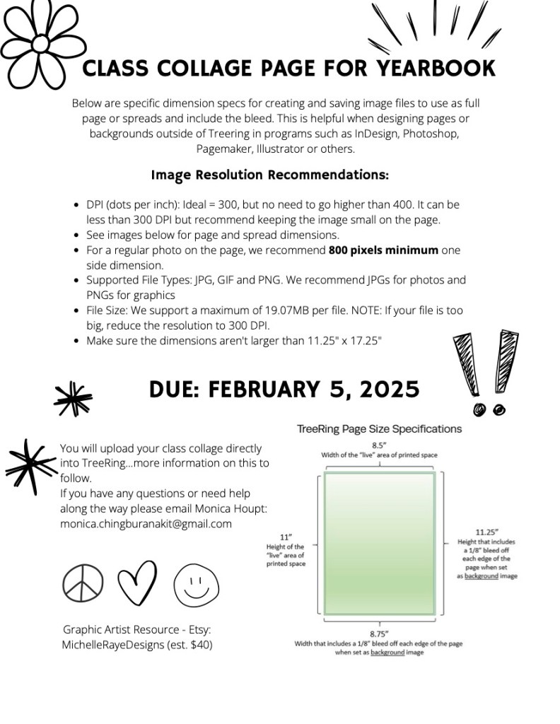For room parents, class collage pages are due FEB 5, 2026.